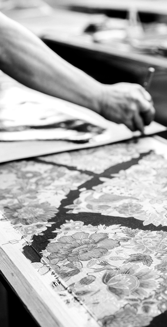 伝統と格式に縛られず、常に新しいものを発信し続ける仁仙ブランド。そのかなめとなるセンスの追求と制作への意気込みに日夜取り組んでいる。